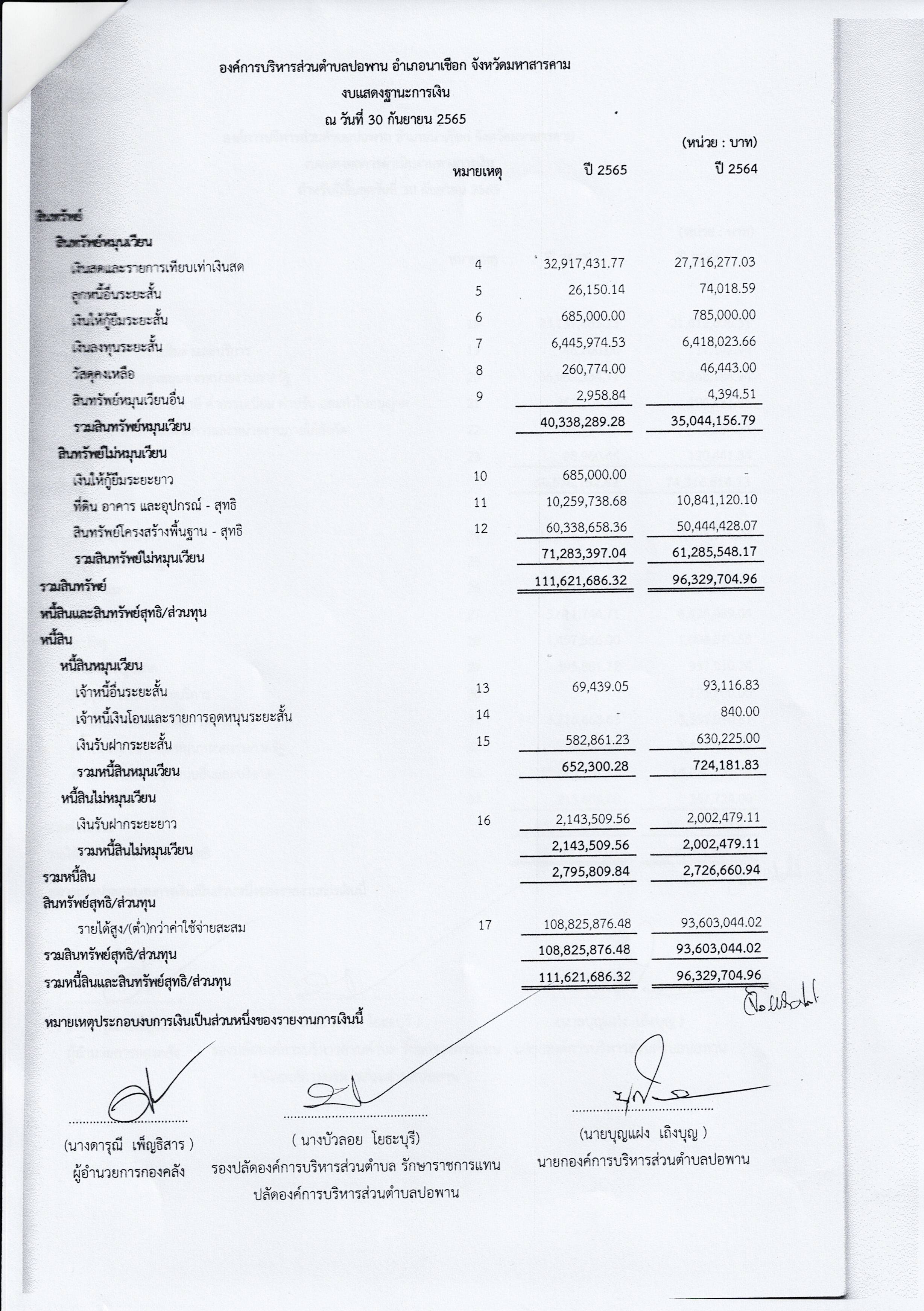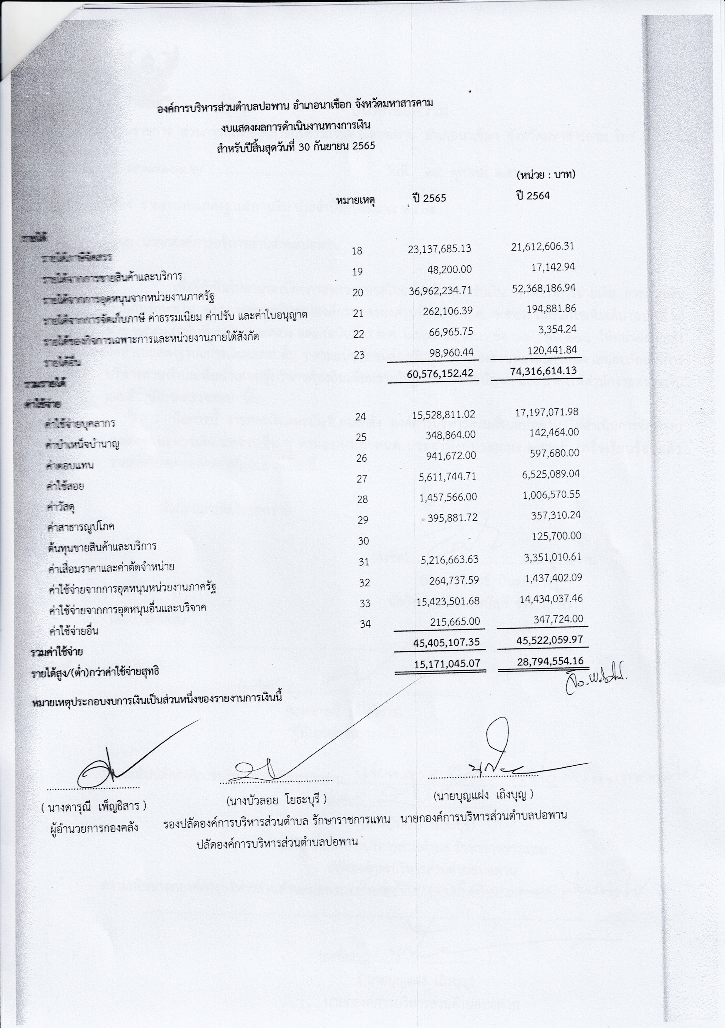 รายงานงบการเงินประจำปีงบประมาณ พ.ศ.2565 อบต.ปอพาน